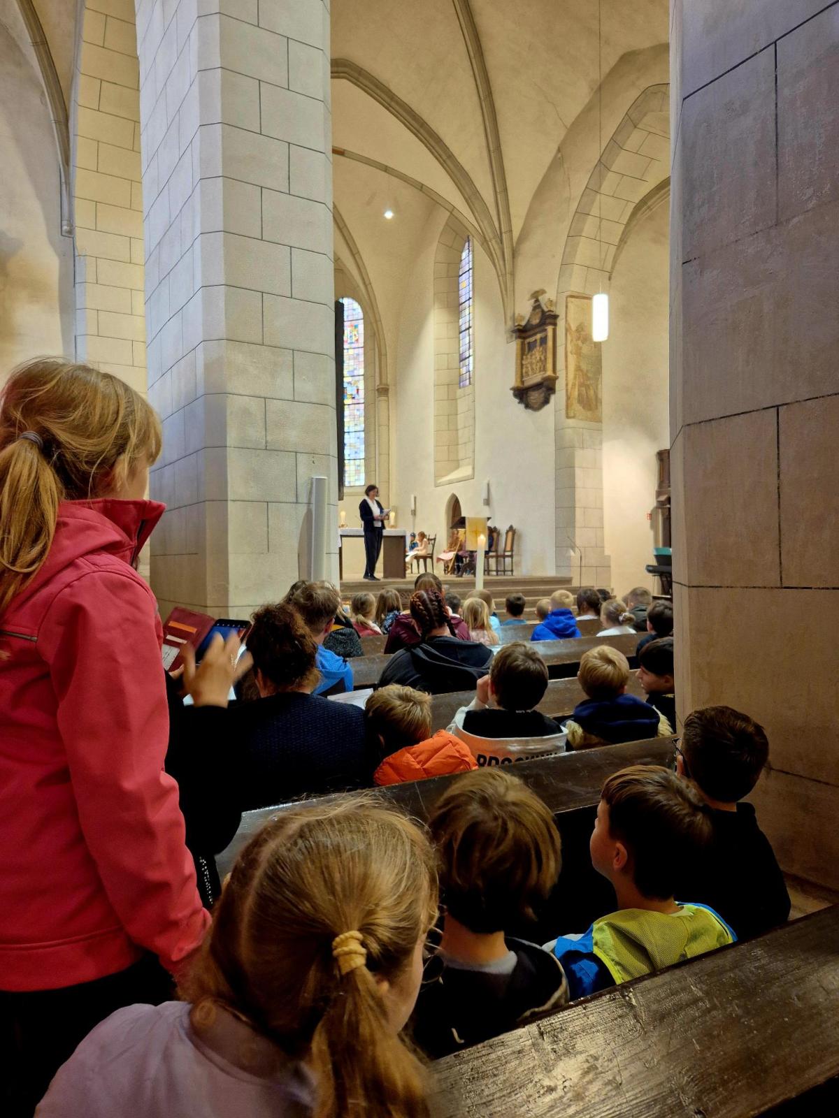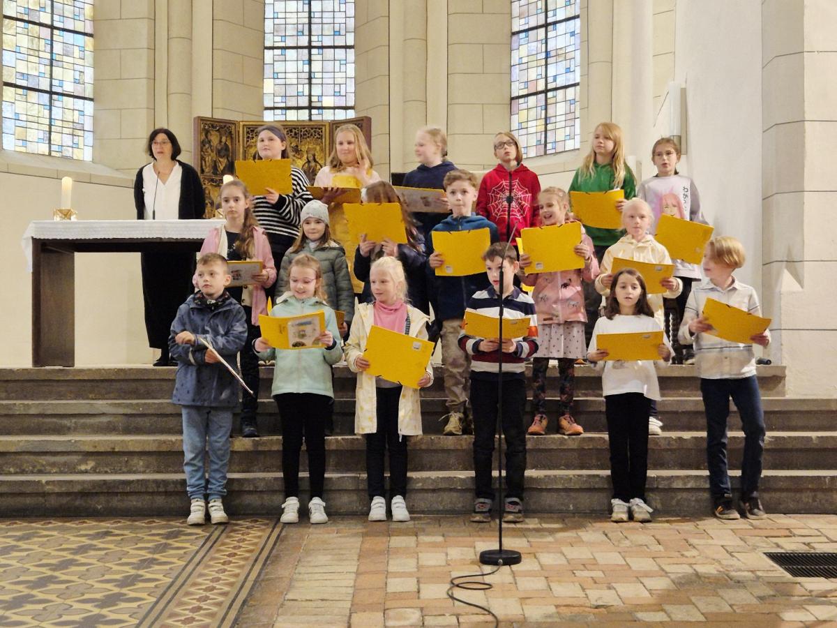 Den feierlichen Abschluss bildete ein gemeinsamer Erntedankgottesdienst, bei dem die Kinder einige ihrer Werke präsentierten und gemeinsam sangen und beteten. Im Anschluss fand ein Basar statt, bei dem die hergestellten Dinge angeboten wurden. Eltern, Großeltern und Gäste konnten die Ergebnisse der Projektwoche bestaunen und gegen eine Spende mit nach Hause nehmen.